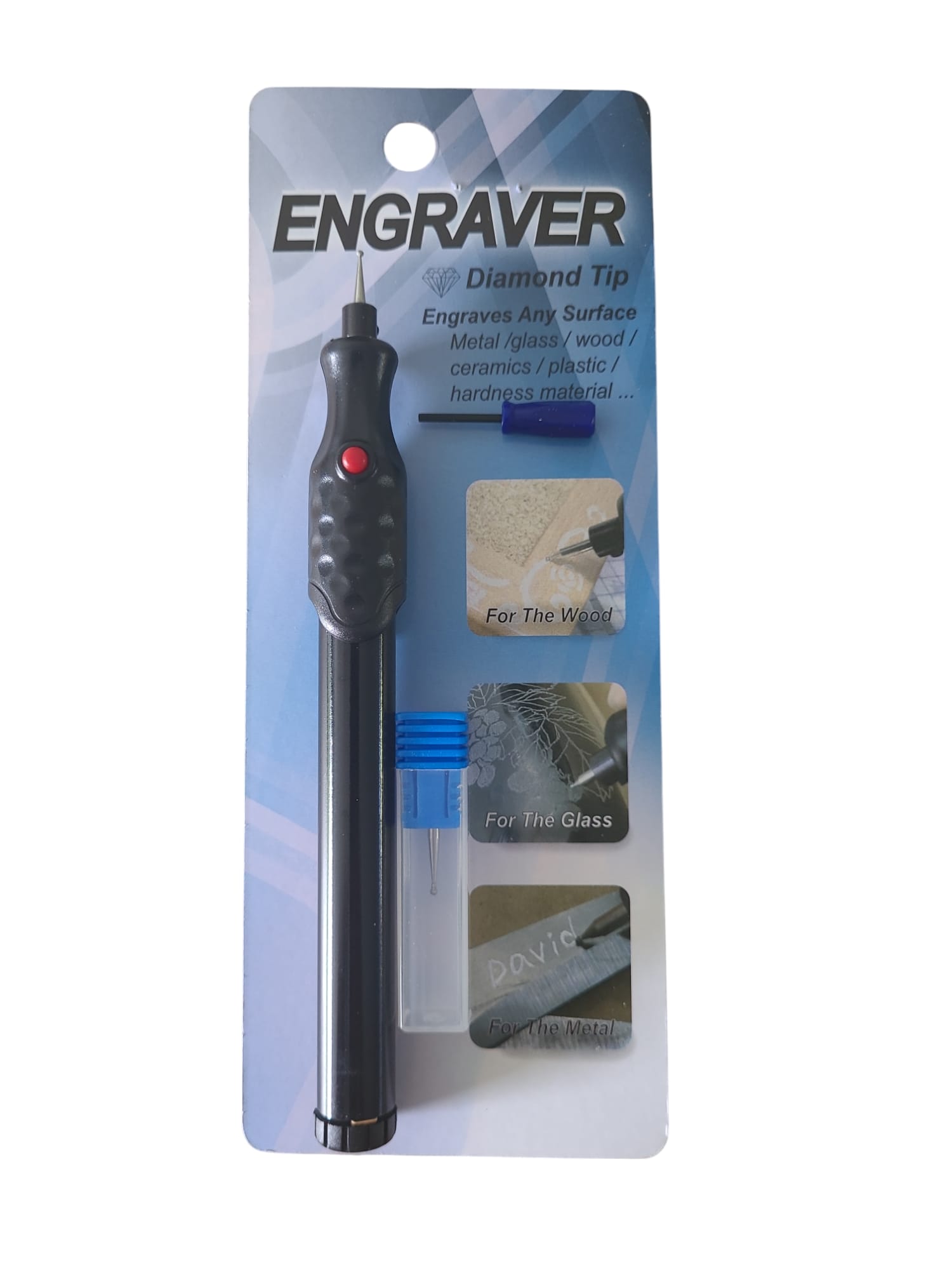 Der Gravurstift eignet sich ideal zum Bearbeiten verschiedenster Materialien wie Metall, Bernstein, Holz, Glas und mehr.